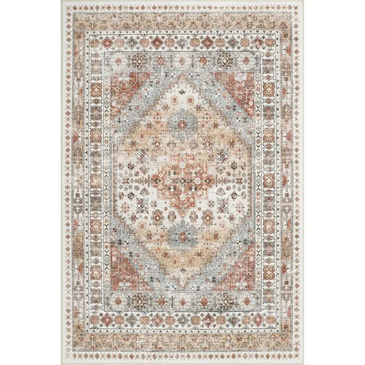 8x10 Washable Area Rug - Vintage Orange Area Rug for Home