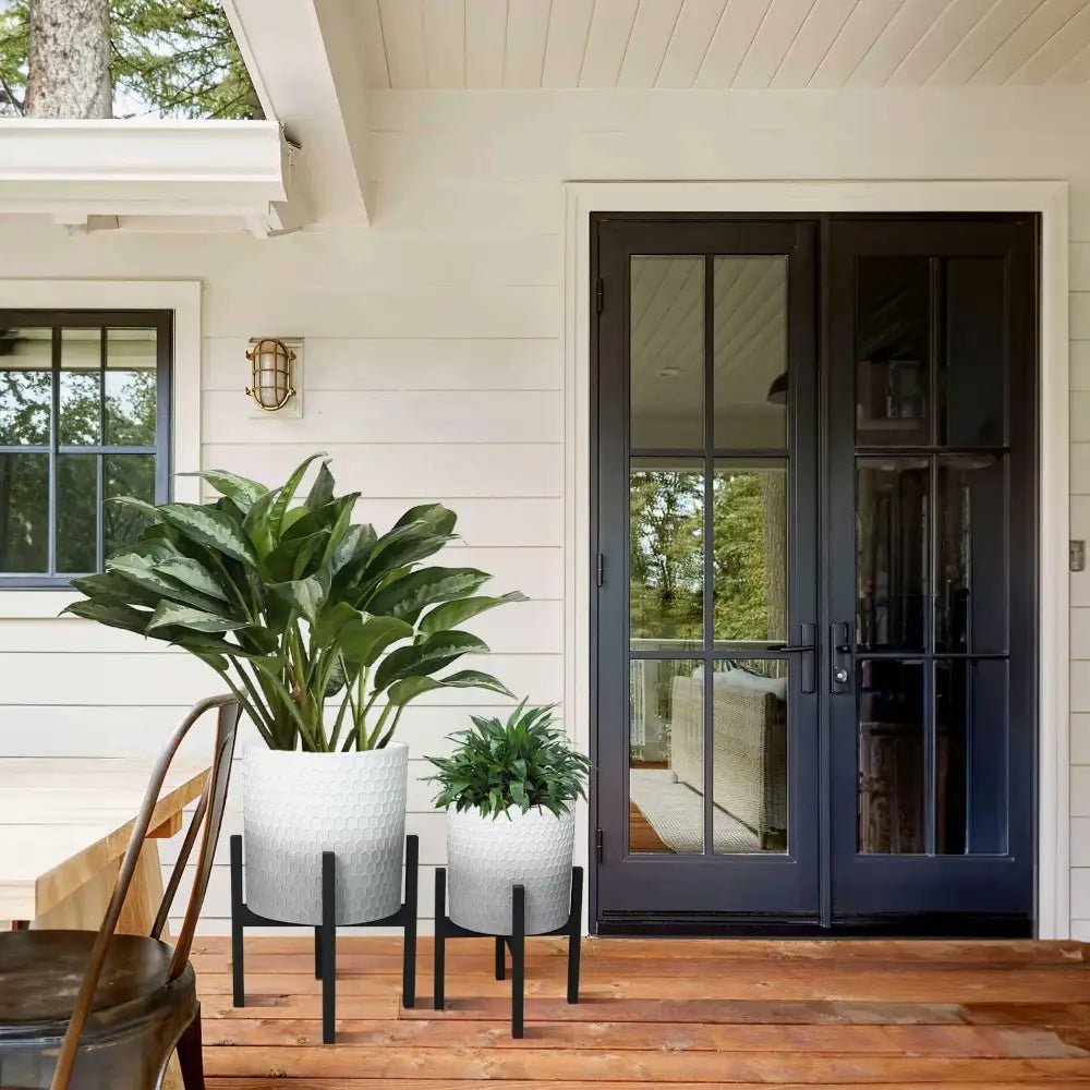 10 & 12 Inch Decorative Planters - 2 Plant Pots with Stands - Bizaargo